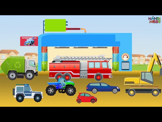 A kisautók a sárban játszanak, amikor az egyik elakad a többiek megpróbálják kihúzni....